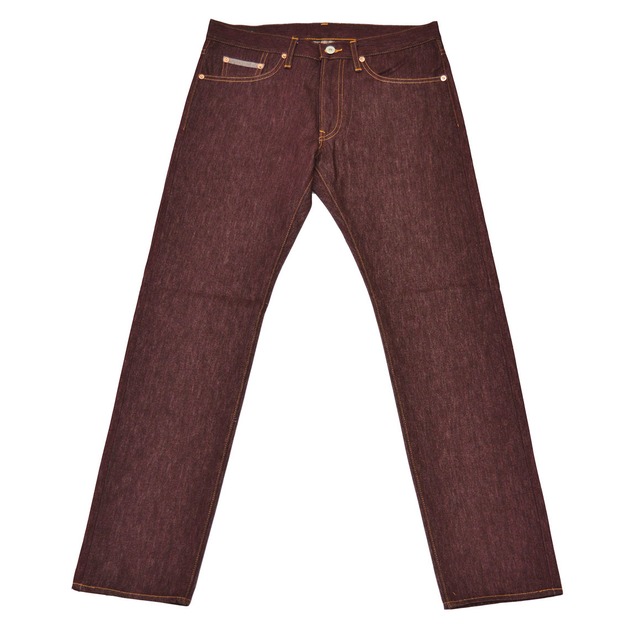 尾州デニムとは、 綿100%でありながら、しなやかでコシのあるデニムです。 織り方も染め方も今までのデニムとは違います。 織りは、高密度でありながら風合いにこだわり、 丈夫で、柔らかく仕上げました。 染めは、現在ではあまり行われていない 昔ながらの製法で染めることにより、 糸の膨らみを保ち、ウールライクにします。 また、堅牢度が優れているので通常のデニムより 脱色色移りの心配を軽減しています。 【品番】P104-S 【素材】綿100% 【カラー】ボルドー 【サイズ】28、30、32、34 【価格】¥19,000- (税別) 【重さ】11oz 【使用生地】尾州デニム 【注意事項】 インディゴ染料とは違い、脱色や色移りのしにくいものになっていますが、 摩擦による色落ちをしますので、洗濯の際は必ず裏返しにしてください。 【サイズ詳細(平置き測定)】 サイズ 28 30 32 34 ウエスト 76㎝ 80㎝ 85㎝ 89㎝ ワタリ 27㎝ 28.5㎝ 30㎝ 31.5㎝ 股上 25㎝ 25.5㎝ 26㎝ 26.5㎝ 股下 全サイズ81㎝共通 裾幅 17㎝ 17.5㎝ 18㎝ 18.5㎝